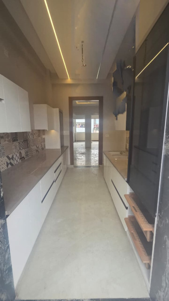 #Luxury modular kitchen with d Deco paint finish #still+4 structure with glass door branded lift .