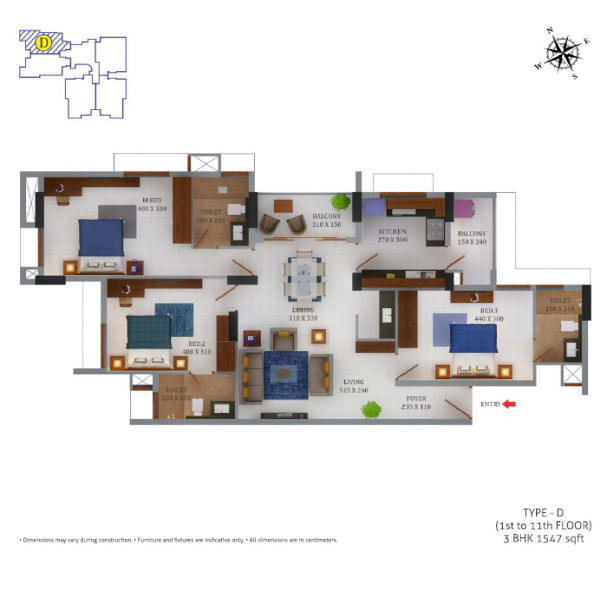 | 3.0 BHK+3T | 1547 Sq.ft. (Built Up) |