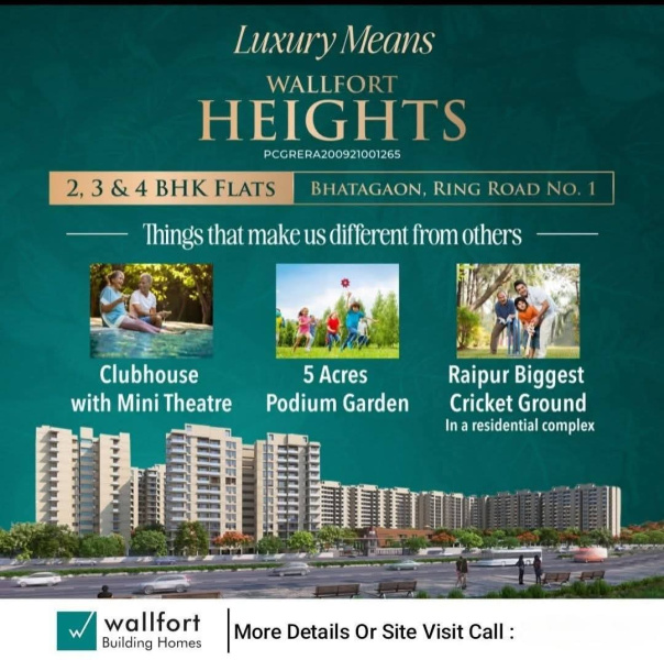 +14 more Wall Fort Heights is more than just a residential project its a thoughtfully designed township that blends comfort, security, and lifestyle in one of Raipurs most promising locations. Developed by the trusted Wallfort Group, the project offers spacious 3, 4, and 5 BHK homes within a gated community that emphasizes greenery, open spaces, and modern amenities. With excellent connectivity to major city landmarks, a peaceful environment, and a host of lifestyle features like a clubhouse, swimming pool, landscaped gardens, and sports facilities, Wall Fort Heights is ideal for families seeking a quality living experience. The projects strong construction quality, vastu-compliant designs, and ready-to-move status make it a smart choice for both end-users and investors looking for long-term value and elevated living.
