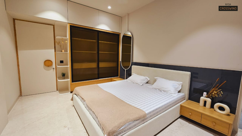 The apartment features three well-ventilated bedrooms with ample natural light, ensuring a bright and airy atmosphere throughout the day. The master bedroom comes with provision for an attached bathroom, while the other rooms are designed to offer flexibility for family living, guest accommodation, or even a home office setup.
