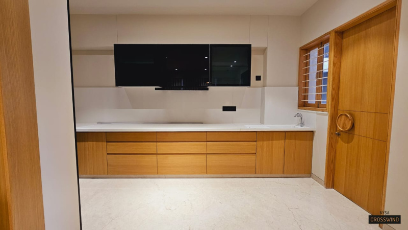 The living and dining area is expansive and seamlessly connected, making it perfect for both everyday living and entertaining guests. Large windows enhance cross-ventilation and provide a pleasant ambiance. The flat includes a dedicated kitchen space with provision for modular fittings, allowing you to design it as per your taste and requirements. There is also a utility area attached to the kitchen for added convenience.