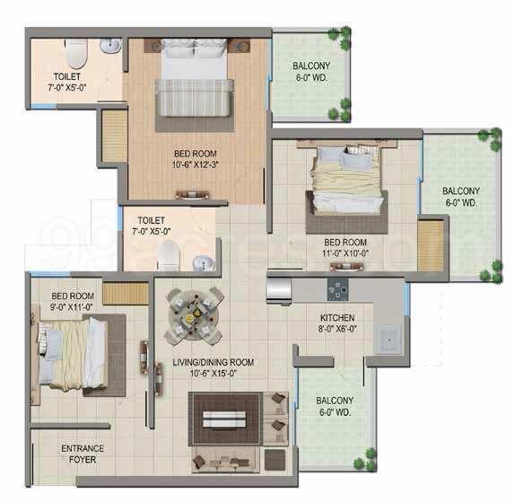 | 3.0 BHK | 1225 Sq.ft. (Built Up) |