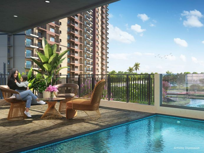 Residents can soak in the breathtaking views of the landscaped gardens and lush greenery from the expansive balcony, making it the ideal spot for enjoying morning coffee or evening cocktails.