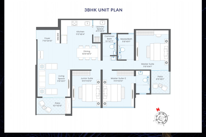 | 3.0 BHK+3T | 1270 Sq.ft. (Carpet) |