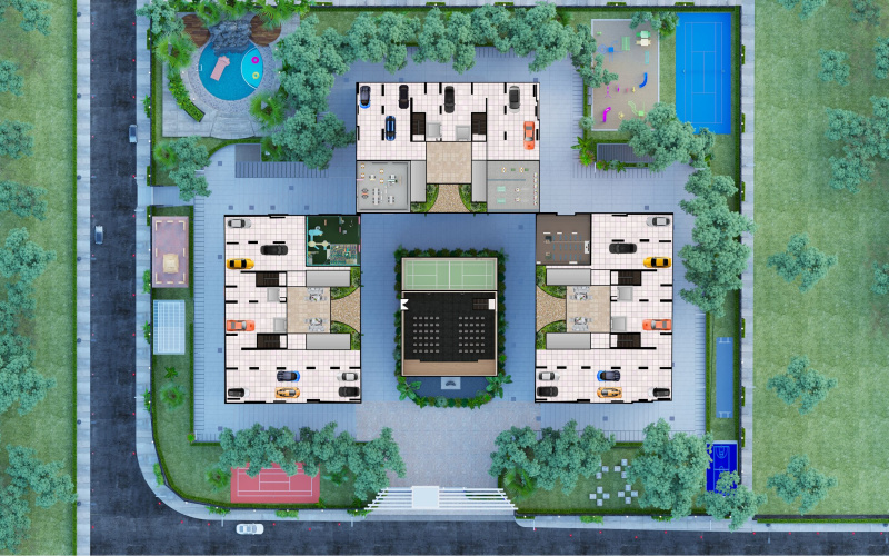 SV POLARIS has come up with a smart method of construction know as the "Aluminium Formwork System (MIVAN)". A formwork system is used for forming the cast in place to make concrete structures of the building. SV POLARIS has significantly architected 80% of open space in 2.85 acres of land., specifically modelled for the feel of individual flats, which provides you with wellI-ventilated units with natural light and air along with Vastu-compliant units without Compromising on Style and Space. An all-around 10' boundary wall with a grand main entrance, BBMP& RERA approved Basement, Ground and Upper 13-floors apartments of 223 flats of 2BHK and 3BHK with 3 blocks named SHREE.VEERAM.GEETHAM.