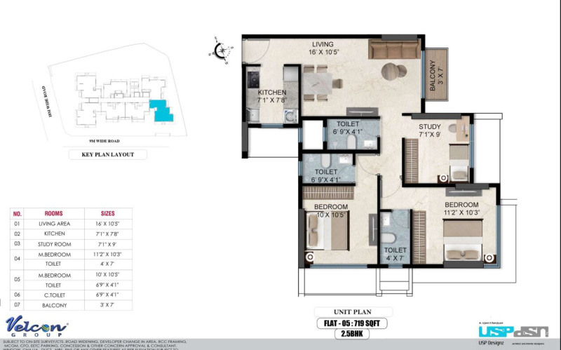 _2.5 Bed : ( 730 sqft with balcony )