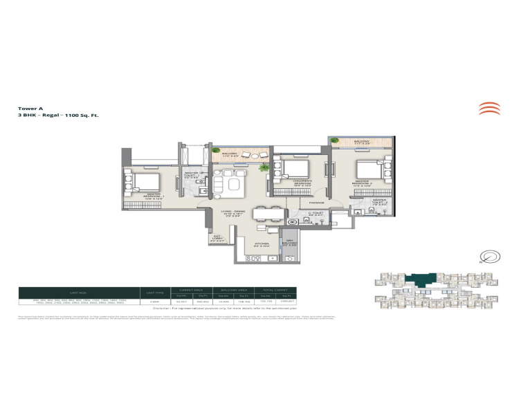 | 3.0 BHK+3T | 1100 Sq.ft. (Carpet) |