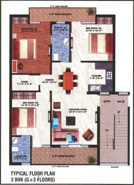 | 3.0 BHK+3T | 1300 Sq.ft. (Built Up) | 1300 Sq.ft. (Carpet) |