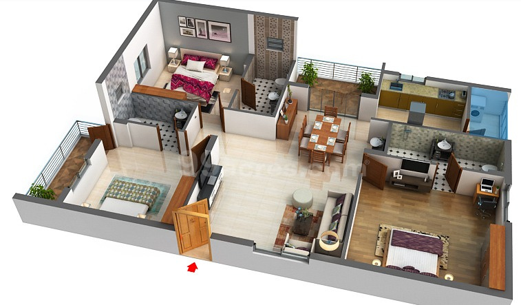 | 3.0 BHK+3T | 2520 Sq.ft. (Built Up) |