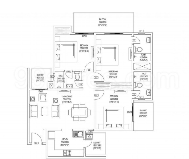 3.0 BHK | 946 Sq.ft. (Carpet) |