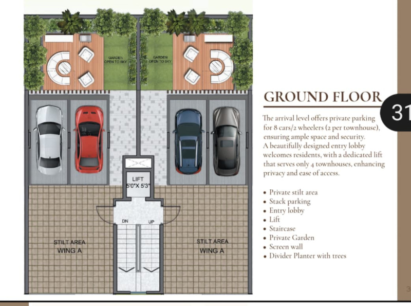 * Har Villa ke liye 2 cars ki parking