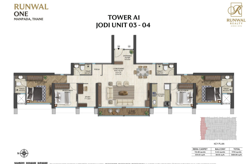 | 3.0 BHK | 962 Sq.ft. (Carpet) |