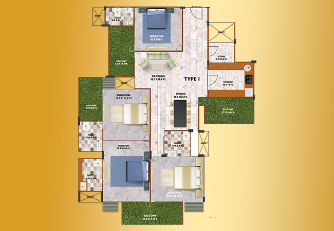 3.0 BHK+3T | 1460 Sq.ft. (Built Up) |