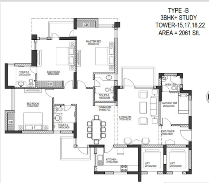 | 3.0 BHK | 1692 Sq.ft. (Built Up) |