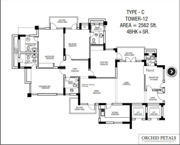 | 4.0 BHK | 1712 Sq.ft. (Built Up) |