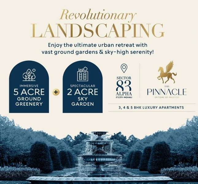 The Pinnacle is a premium residential group housing in IT City, Sector 83A, Mohali on Airport Road Opp. Plaksha University. Ultra Luxury 3/4/5 Flats In Mohali. The Pinnacle Mohali Sky Walk on the 42nd floor offers a breathtaking view of the city. ...More