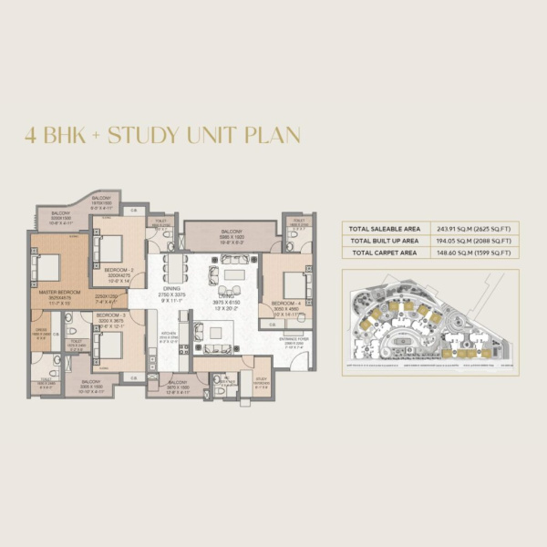 4 BHK + Study: 2625 sq. ft.