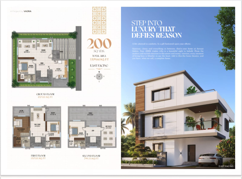 The project features spacious 4 & 5 BHK triplex villas with modern architecture, designed to provide excellent ventilation, natural light, and functional living spaces. Each villa is crafted with high-quality specifications and includes luxurious elements like private terraces and home theatre provisions, making it ideal for contemporary families.