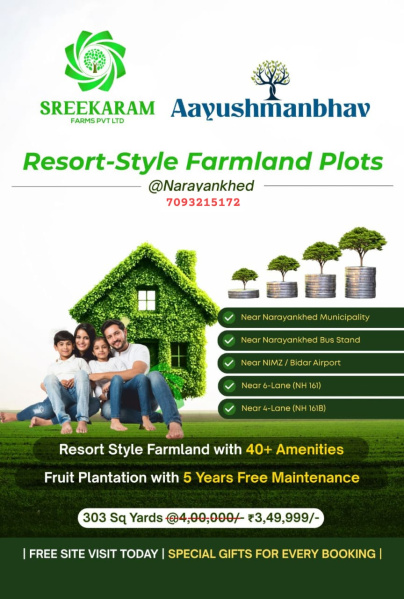 Sreekaram farms offers farm land plots with clubhouse at narayanakhed