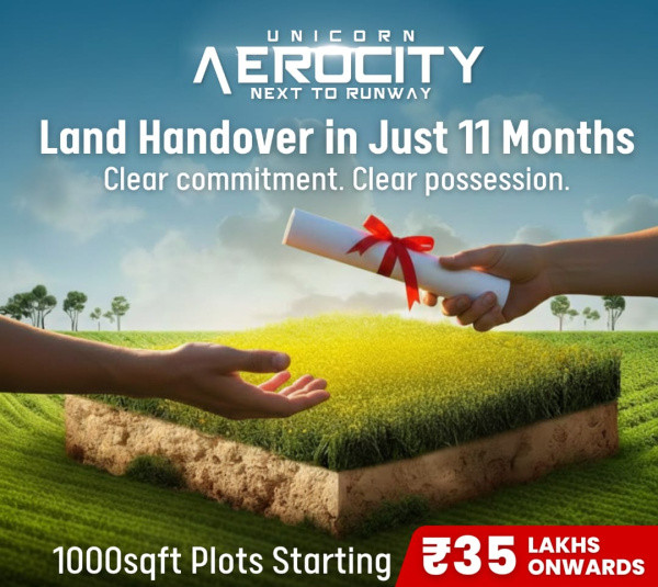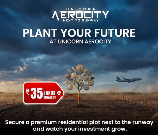 +4 more The Story of a Landmark Unicorn Aerocity \r\nIn every city, there comes a time when a single project changes the way people think about living, investing, and building their future. Near the rapidly growing airport zone, where connectivity meets opportunity, a vision was born a vision that is now known as Unicorn Aerocity.\r\nNot just another land project, Unicorn Aerocity was carefully designed to become the most premium and demanding land & bungalow destination in the airport area. When others were still thinking, this project took shape with proper planning, wide roads, secure gated surroundings, and a future-ready lifestyle.\r\nAs the city expands and the airport region transforms into a prime hub, smart investors and homebuyers have already recognized the value. They understood one simple truth:\r\nLocation decides the future.\r\nAnd Unicorn Aerocity offers exactly that a location that will never be created again.\r\nThis is not just a project\r\nThis is the first and last opportunity to own land in such a strategic airport zone.\r\nPlots of 1000, 2000, and 4000 sq ft are not just pieces of land they are foundations of dream homes, luxury bungalows, and a high-return investment for tomorrow.\r\nFamilies are already planning their future homes here. Investors are securing their assets before prices rise. Because once it\'s gone it\'s gone forever.\r\n This is your final call.\r\nDont wait for regret. Take action while the opportunity is still in your hands.\r\nBook your site visit today and step into the future with Unicorn Aerocity.\r\nUnicorn Aerocity Where Your Dream Address Begins.