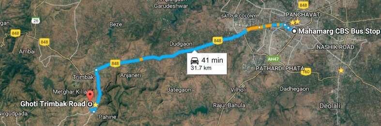 Ghoti-Triambak Highway and village road touching beautiful farm land located at only 13 kms from NH3 and trimbak highway. Totally fenced property with vaitarna dam view at only 200 metres away. Suitable for resort , farm house or organic farming.