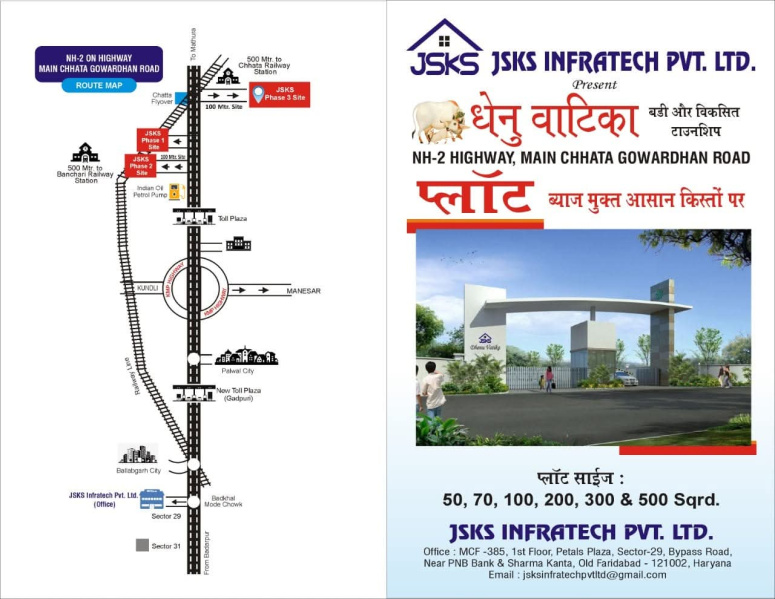 Welcome to Dhenu Vatika, a premier residential plots project crafted located at Near Chhata Govardhan Mane Road, Mathura.. Build your dream home amidst picturesque landscapes and create memories that last a lifetime at Dhenu Vatika. Your perfect abode awaits! ...More