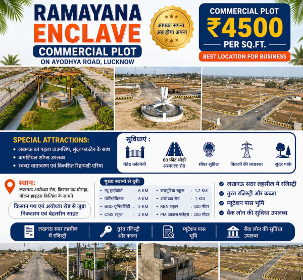 Now available in the capital city of Lucknow, a high footfall and high return commercial plotted location that is perfect for shops, showrooms, offices, clinics, franchises, and rental income.