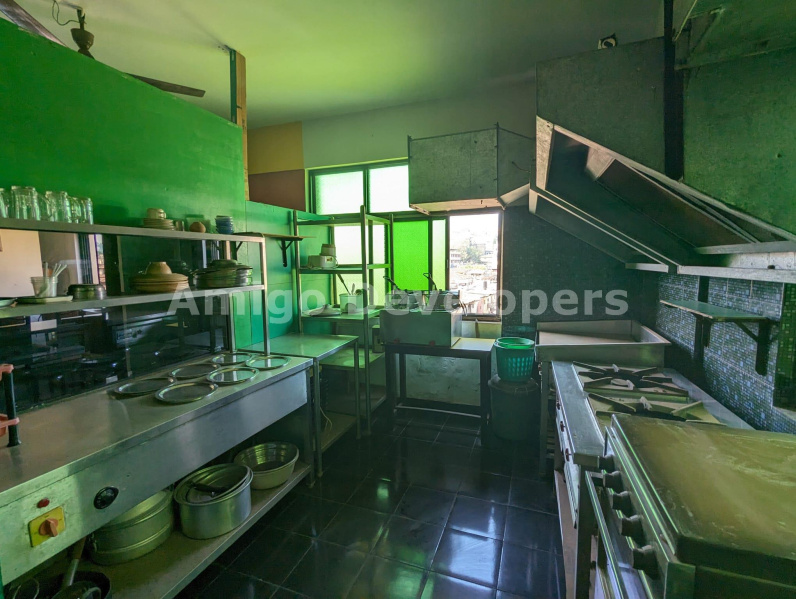 Shop for sale in Mapusa, 110 sqm. Located on the 2nd floor with lift access, 12-15 years old. Includes 3-phase electricity, water connection, restaurant furniture, and kitchen equipment. Maintenance is 8,000 per year. Open parking available. Ideal for a restaurant setup.