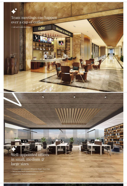 Office Features• Provision to join Multiple Offices for Bigger Floor Plate• Demarcated Work Stations & Director Cabins• Provision for Pantry & Restrooms