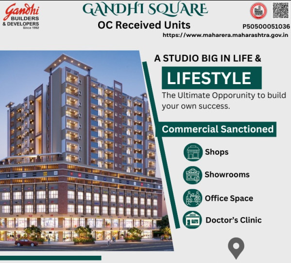 A Prime Commercial Shops Destination at Omkar Nagar Square, NagpurGandhi Builders and Developers, a trusted name in real estate, proudly present Gandhi Square, a well-planned and commercially sanctioned project that has been in existence since 1992. This ready-to-move-in commercial hub has received the Occupancy Certificate (OC) and offers a lucrative investment opportunity for businesses and investors alike. ...More