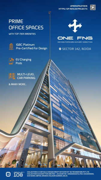 Group 108 One FNG in Sectro 142, NoIda! Discover the latest pinnacle of excellence bang on FNG Expressway and adjoining Noida Expressway in Sector 142, Noida. Group 108 One FNG (Sector 142, Noida) is the latest commercial real estate project by Group 108.In the heart of the bustling Sector 142 Noida, emerges a beacon of innovation and business potential – One FNG. Group 108’s One FNG or FNG One is spread over an impressive 14.46 Acres. This commercial project boasts two towering edifices with G+37 and G+15 floors, alongside low-rise retail blocks at G+1.Developed by Group 108 (through its group company SS Technopark Private Limited), this FNG & Noida Expressway commercial real estate project is set to redefine the landscape of commercial real estate.