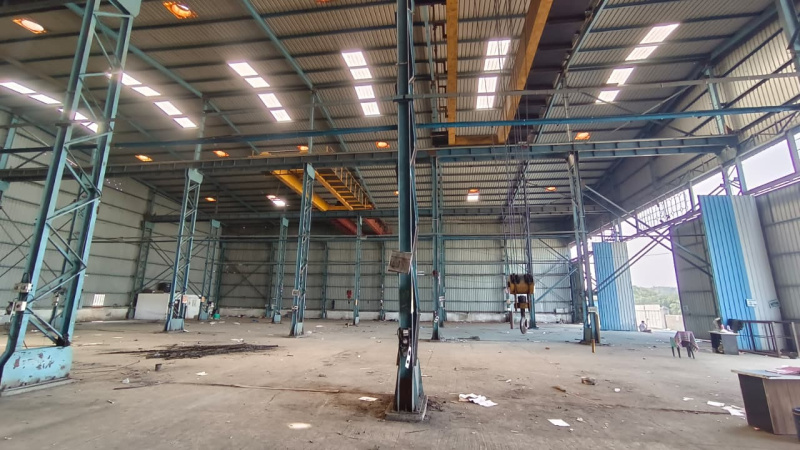Facilities Available: 100 HP power connection, Ample MIDC water supply, 4 nos of crane 10 ton each capacity, security cabin, open parking space, wall compounded,washroom