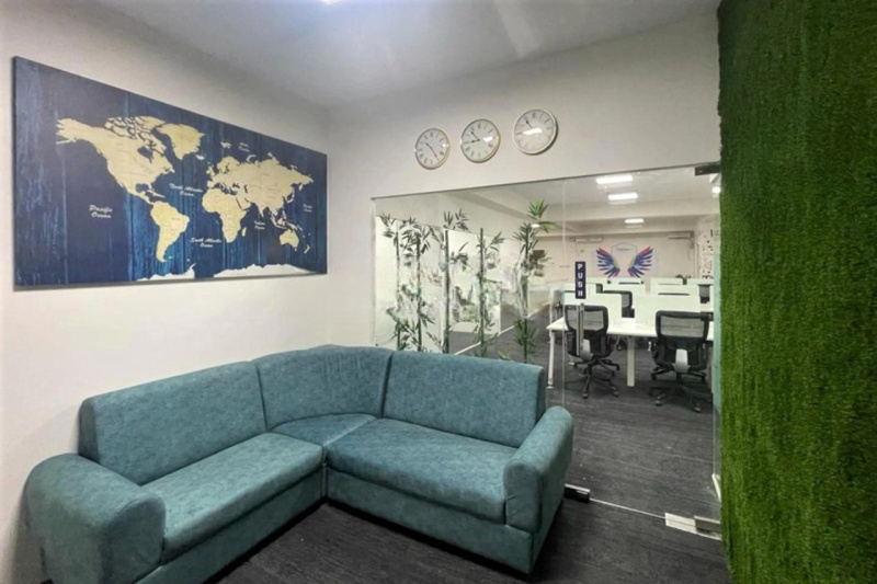 The office is situated on the 8th floor and consists of a front desk cabin.