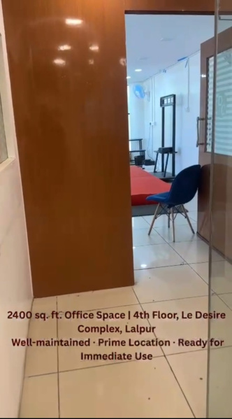 A well-maintained, 4th floor ,2400 sq. ft. commercial space available immediately at Le Desire Complex, Lalpur.