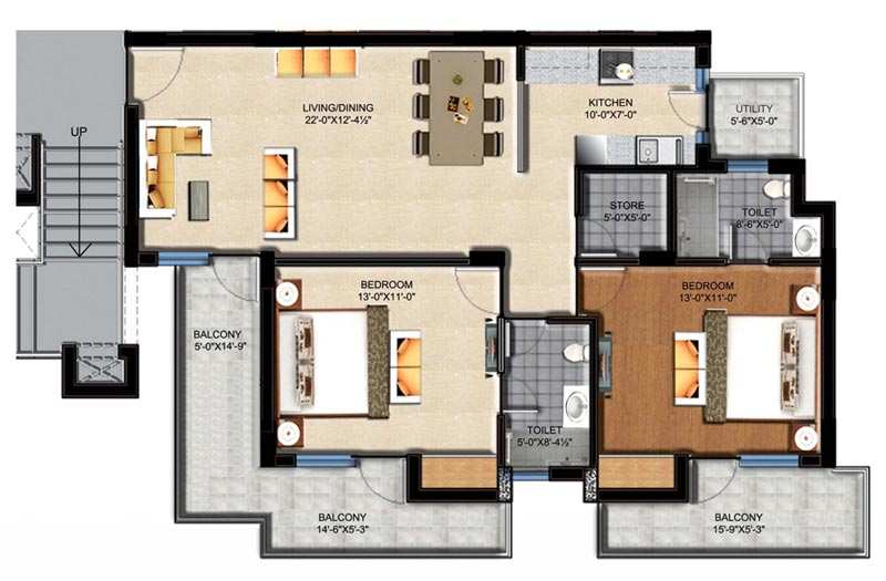 SUSHMA Green Vista located in SUSHMA SQUARE, Zirakpur has a spacious area of 1276 sq ft. These two bedroom apartments are a delight for people who aspire to live in luxury. The sprawling living room, intimate bedrooms, an all purpose utility store, scintillating bathrooms and spacious modular kitchen, all are hallmarks of SUSHMA Green Vista apartments. Even the landscaped garden in the project is created for you to open upto nature and rejuvenate yourself everyday.