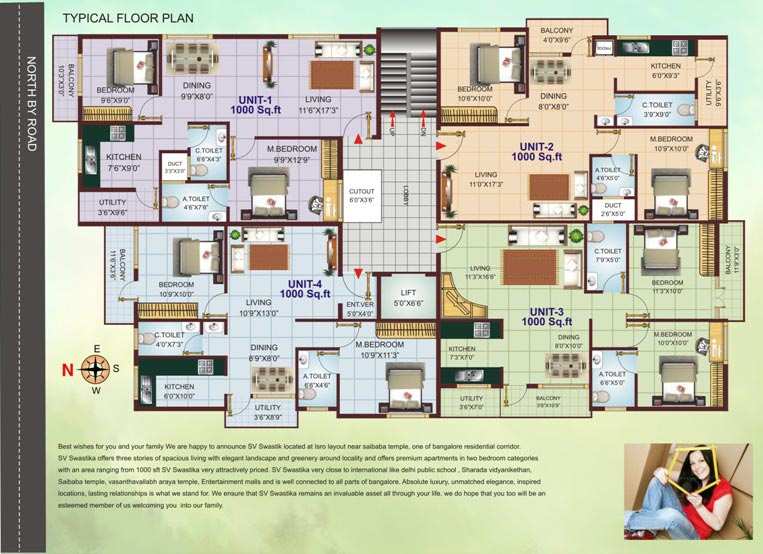 "SV SWASTIK" offers three stories of Spacious living with elegant landscape and greenery around locality and offers premium apartments in two and three bedroom categories with an area 1000 Sqft. Rs.3200/PSqft.