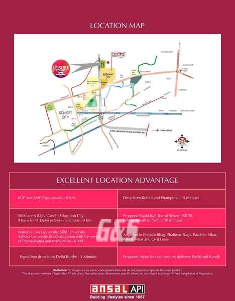 +2 more Leisure County in Sec.- 61,Sonepat:- Leisure County is an affordable, high quality, urban township concept. Located in Sector 61, Sonepat. The immediate proximity to major freeways offers superior access for the flat owners and provides a strategic advantage to them. On offer are 2 bedroom, in various combinations, within an open and a spacious setting-landscaping is a predominant part of the complex with maximum apartments getting a direct view of the central landscape and surrounding areas.