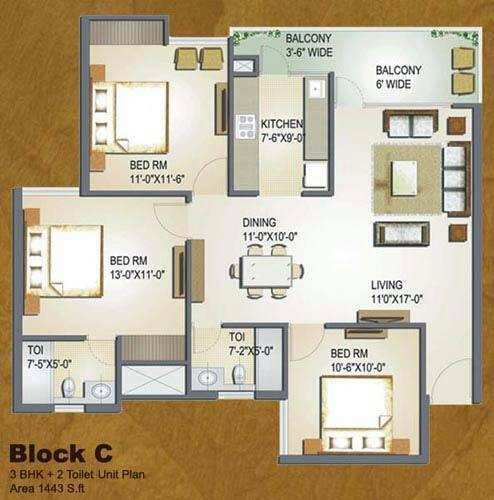 3.0 BHK+3T | 1417 Sq.ft. (Built Up) | 1417 Sq.ft. (Carpet) |