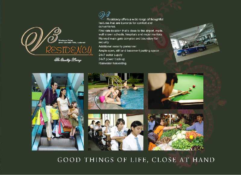 V3 Residency is a premium residential project from Amazing Constructions Pvt Ltd. the leading builder and developer in this region of Uttar Pradesh. V3 Residency offers you 3 BHK and duplex apartments that befit your status. Spacious living with outdoor luxurious amenities to meet your luxurious lifestyle, full security, superb location. Exclusive club with state of the art swimming pool, gym, wellness centre, billiards room, kids play area and multipurpose hall. Children's park with swings and slides and extensive play area Green islets with lush grass and lovely plants.