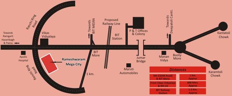 A new township is coming up on ring road chuttu near B.I.T Mesra chowk its a 14 acre projects with 200 plots with modern amenities 30ft & 25ft wide p.c.c internal road, 12ft outer boundary wall, children park, shopping complex, temple, drainage, street light, security, maintaining staff, power back up, just 1km to B.I.T chowk, 2km Apollo hospital, 9 km to city, 13km railway station, 2km school