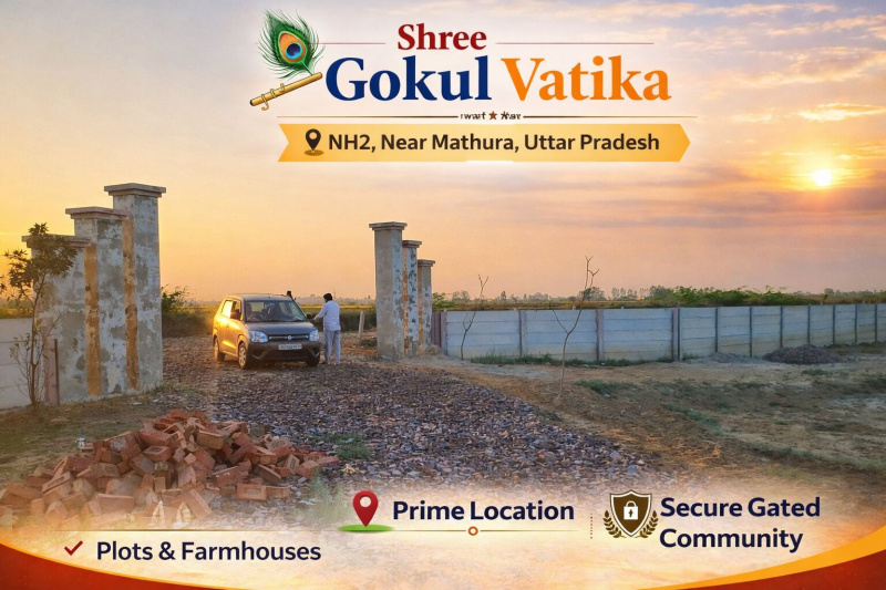 Experience the difference of professional township planning at Shree Gokul Vatika. Unlike ordinary colonies with narrow roads and no security, we offer 30ft wide blacktop roads, 24/7 CCTV surveillance, and complete infrastructure. Located strategically on NH2 near Mathura, this investment-grade gated community sets new standards for quality living. Every detail is professionally planned for your family's comfort and safety. 30 feet Wide Roads, 24/7 CCTV Monitored, Approved Planned Layout