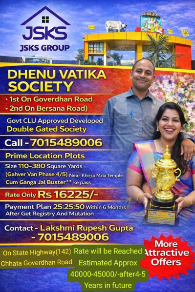 Welcome to Dhenu Vatika, a premier residential plots project crafted located at Near Chhata Govardhan Mane Road, Mathura.. Build your dream home amidst picturesque landscapes and create memories that last a lifetime at Dhenu Vatika. Your perfect abode awaits! ...More