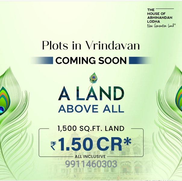 Divine Touch. Global Appeal. Vision-led GrowthA divine living experience in the heart of Vrindavan. A land steeped in centuries of devotion, touched by the Divine and revered across the world. Now rising with purpose, where sacred heritage meets modern comfort - a place your soul truly belongs.Vrindavan Global by The House of Abhinandan Lodha (HoABL) – Bookings Opening Soon – August 2025, Plotted Development in Vrindavan spread over approximately 65 Acres, offering around residential plots in a well-connected location of Vrindavan, Uttar Pradesh. The Project is scheduled for Pre-Launch on 5th August 2025 and it’s situated near well-known spiritual landmarks including Banke Bihari Temple, ISKCON Vrindavan, and Prem Mandir.Key HighlightsInspired by Eternal Vrindavan and Designed for the Discerning, Vrindavan Global is where Heritage Meets Appreciation.Project Area