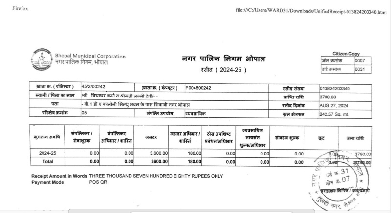 Plot no. B-1, Shivaji Nagar, near Saraswati Shishu Mandir, Behind Red Cross Hospital, near Shivaji Chauraha. Front 13.15 m, back 17.70 m, depth 28.15 m. 4760 sq ft but actual more than 7000 sq ft