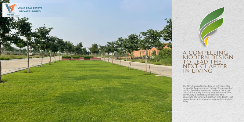 +1 more Skye Luxuria Greens is a premium residential development located in Talawali Chanda, Indore, near Dr. APJ Abdul Kalam University. Spread across 20 acres, this project offers plots ranging from 900 to 1,100 sq. ft., designed to provide a serene and luxurious living experience. The community boasts wide 9-meter roads, lush landscaped gardens, themed parks, and multi-utility sports courts. Modern amenities include underground utilities, MS street lighting, and sandstone plot markers. Residents can enjoy peaceful surroundings with easy access to major routes like the Indore Bypass and Mangalia Sadak. Developed by Skye Earth Developers, Skye Luxuria Greens is RERA registered and ready for immediate possession.