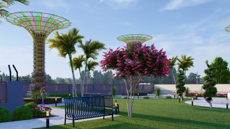 Spanning 100,000 sq. mtr., this premium development offers residential plots and retail shops with top-notch infrastructure, all set in a serene Singapore theme. From the iconic Merlion Fountain to the grand Marina Bay Park entry, every corner reflects elegance and modernity. The township features unique landmarks like the Universe Statue, a peaceful Buddha Park with a majestic Buddha Statue, and a vibrant Play Zone Park for families. Central pathways inspired by Singapore’s green boulevards add charm and connectivity. ...More