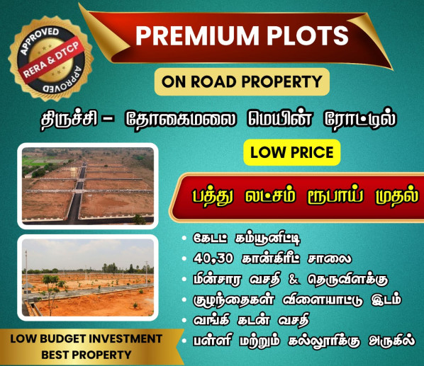 +3 more Property located in Woriyur TRICHY under city limit .\r\nGated community \r\n30ft,40ft concrete roads\r\nStreet lights \r\nChildern play area\r\nBank loan available \r\nEtc.