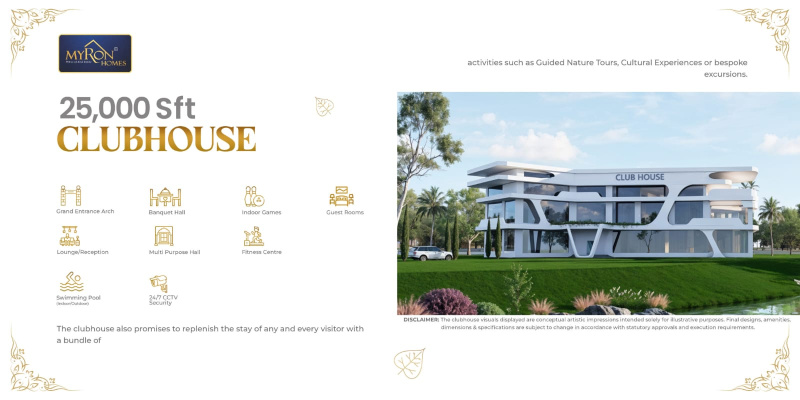 Myron Homes thought about it in the same way to contemplate a club house in the gorgeous venture of Dynasty in Manneguda within the broader extent of hundred plus acres meant for open plots for sale. This club house designed in 25, 000 square feet for a lavish stay for the visitors which offers absolute exclusivity along with a definite prize of happiness. The Club House is by all means a tremendous destination in all perpetual respects. There in it, one can find excellent measures to ensure your exposition to comfort, personal bliss, and physical fitness. The club house is so enriched with a swimming pool and gym surrounded by exquisite locational beauty. ...More