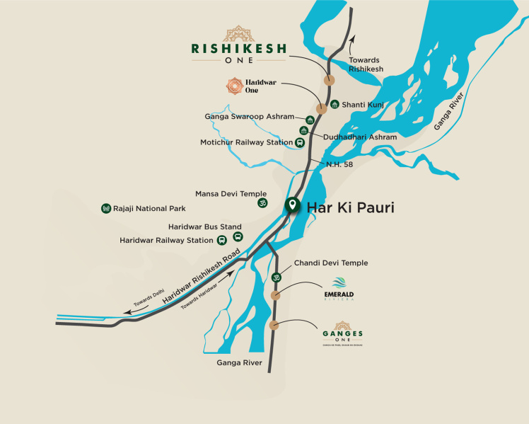 Rishikesh One is a premium residential development offering 1 BHK and 2 BHK flats plus service apartments, located on the Haridwar-Rishikesh road (NH-58) in Uttarakhand.It is described as a “vertical sanctuary” blending luxury residential living with the spiritual & scenic ambience of Rishikesh.Developed by ETH Infra, which is the same developer you are working with for the Haridwar project, so there are brand synergies.Location & Connectivity